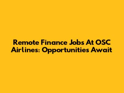 Remote Finance Jobs At OSC Airlines: Opportunities Await