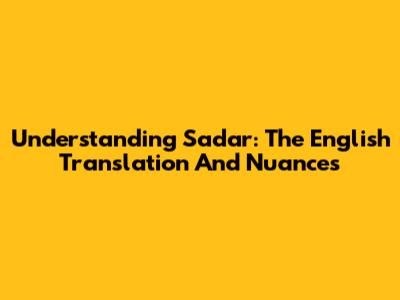 Understanding 'Sadar': The English Translation And Nuances