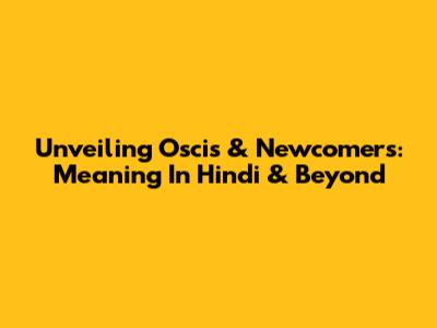 Unveiling Oscis & Newcomers: Meaning In Hindi & Beyond
