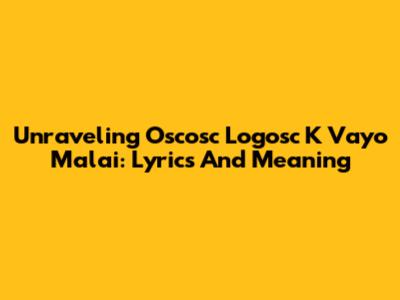 Unraveling 'Oscosc Logosc K Vayo Malai': Lyrics And Meaning