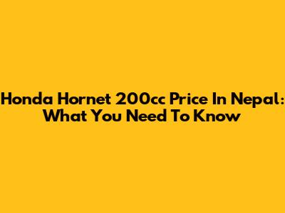 Honda Hornet 200cc Price In Nepal: What You Need To Know
