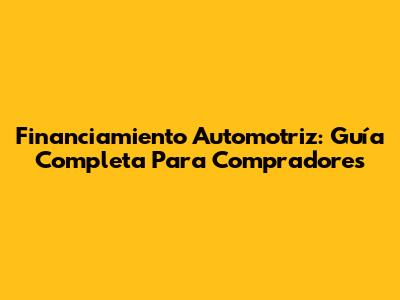 Financiamiento Automotriz: Guía Completa Para Compradores