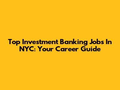 Top Investment Banking Jobs In NYC: Your Career Guide